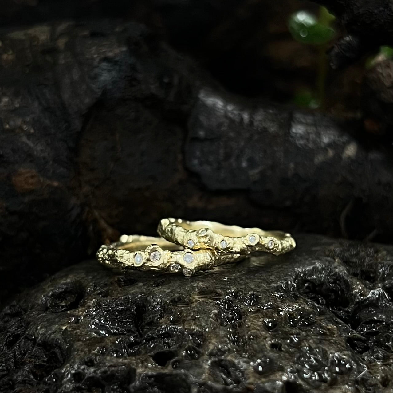Duality speaks to the balance of two forces: strength and delicacy, individuality and togetherness, nature and craft. Just like a marriage, these rings celebrate two lives that remain distinct yet are bound in harmony.