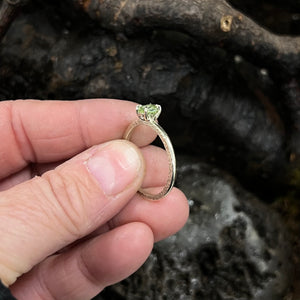 This gorgeous mint tourmaline is 0.46ct and measures approx 6mm x 4mm. I chose to set her in 9ct white gold. The ring has remained unplated as I believe the natural colour of white gold is beautiful in its own right.